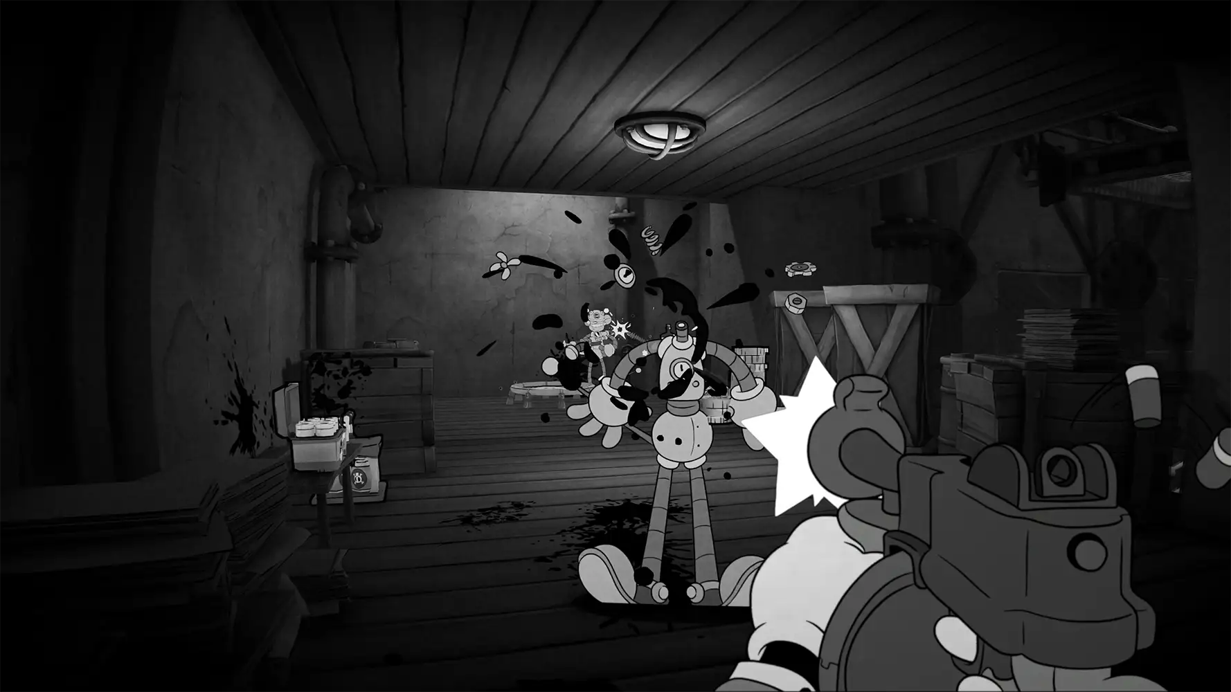 MOUSE: P.I. For Hire è uno sparatutto in prima persona ricco d’azione, che trae ispirazione dai classici cartoni animati degli anni Trenta. Le grafiche in bianco e nero con stile a tubo di gomma sono state disegnate a mano, fotogramma dopo fotogramma, creando un’estetica vintage d’impatto.